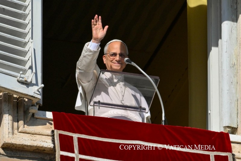 Pope Leo waves to the faithful gathered in St. Peter’s Square (@Vatican Media)